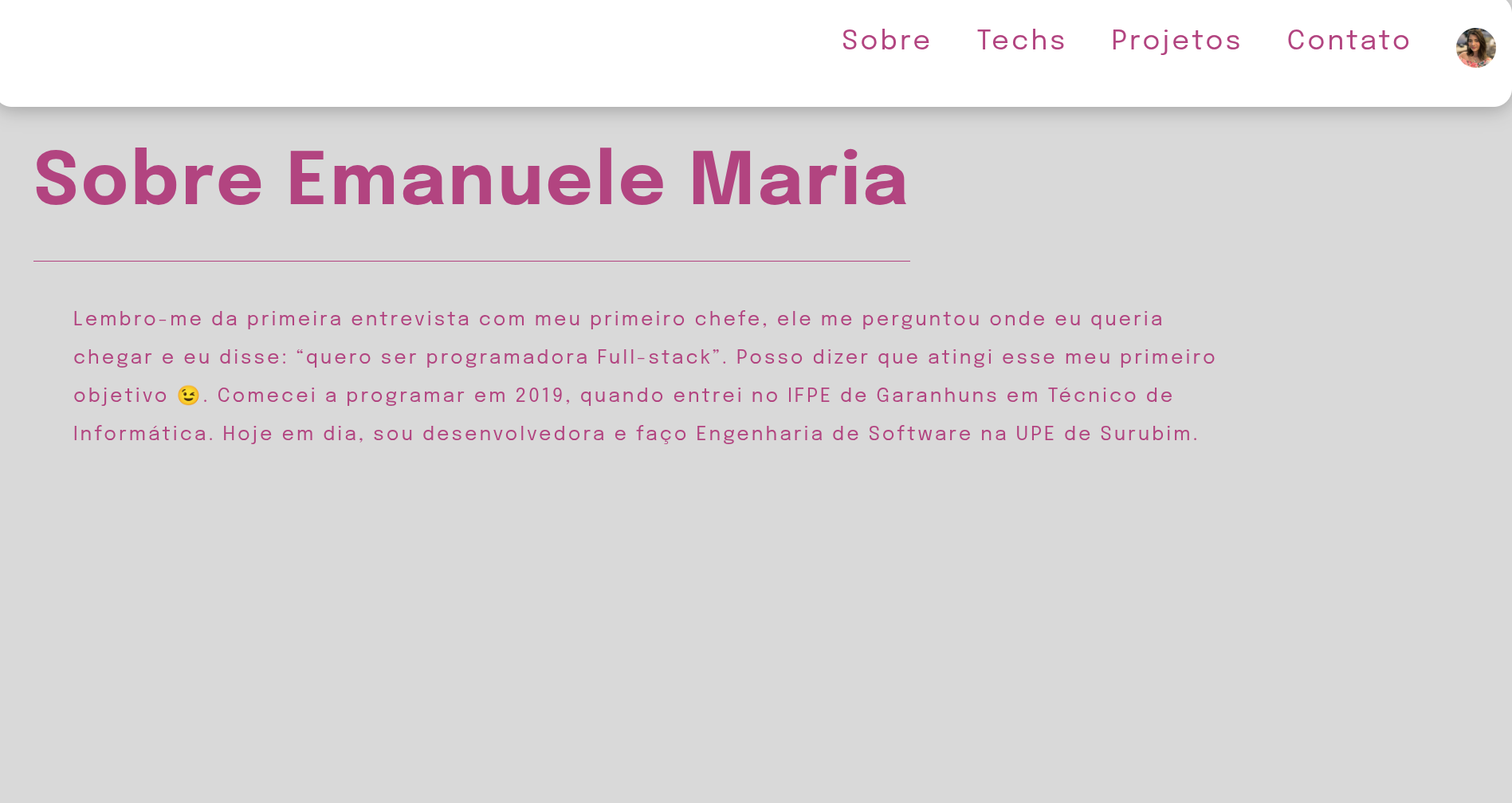 Lembro-me da primeira entrevista com meu primeiro chefe, ele me perguntou onde eu queria chegar e eu disse: “quero ser programadora Full-stack”. Posso dizer que atingi esse meu primeiro objetivo 😉. Comecei a programar em 2019, quando entrei no IFPE de Garanhuns em Técnico de Informática. Hoje em dia, sou desenvolvedora e faço Engenharia de Software na UPE de Surubim.